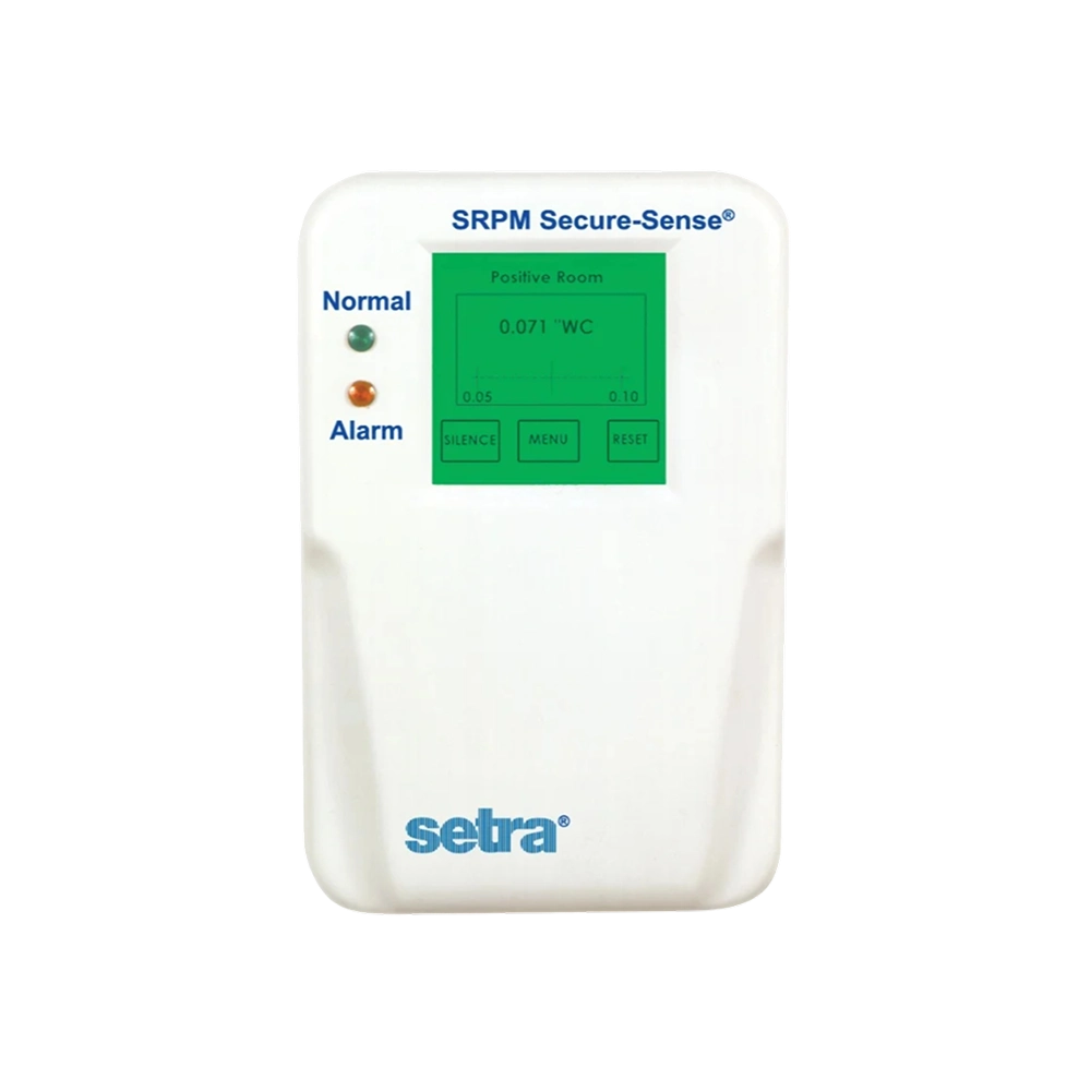 The Room Pressure Monitor (SRPM) is Setra’s standard single-room device for measuring low differential pressure in critical applications. It is widely used in hospitals, cleanrooms, and vivariums where consistent and accurate pressure monitoring is required.